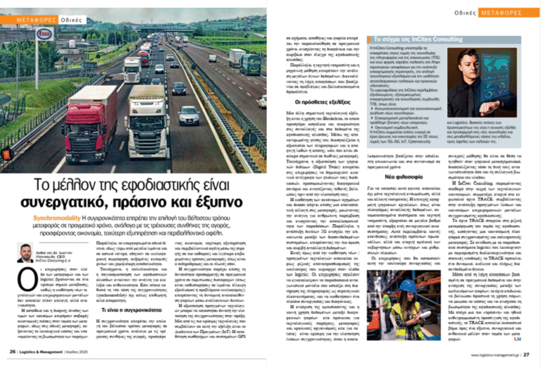 TRACE is proud to be featured in the latest issue of Logistics Management (Issue No. 250), Greece’s longest-running and most respected logistics publication. In an opinion article titled “The Future of Logistics is Collaborative, Green, and Intelligent: Synchromodality”, Dr. Ioannis Neokosmidis, CEO of InCites Consulting S.A., explores the transformative role of synchromodality in addressing current and future challenges in the transport and logistics sector.